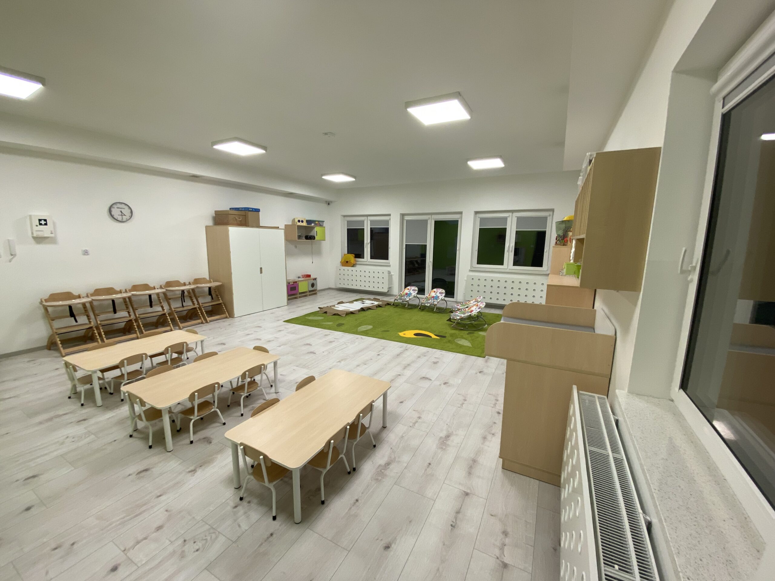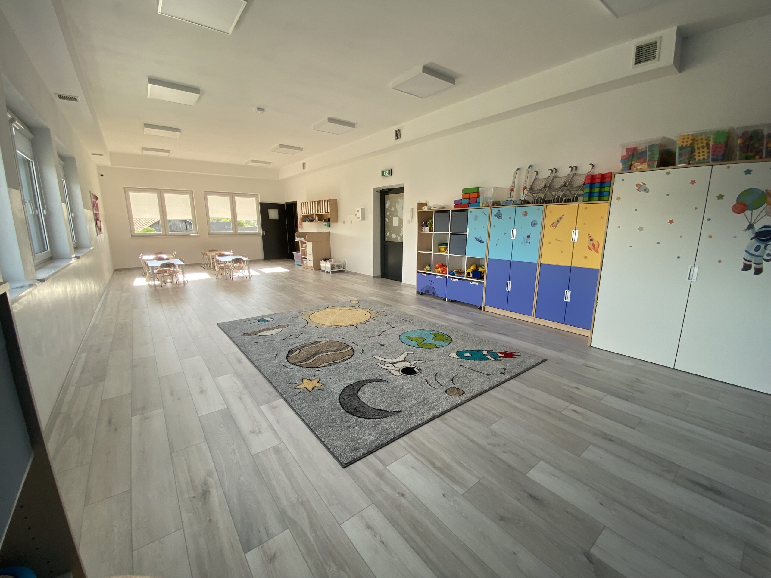Dbamy o komfort dzieci przez cały rok. Pomieszczenia posiadają wentylację mechaniczną nawiewno-wywiewną, która zapewnia stałą wymianę powietrza i przyjazny mikroklimat. W cieplejszych miesiącach system wspomaga schładzanie powietrza, dzięki czemu nawet w upalne dni w salach panują dogodne warunki do zabawy i odpoczynku. Stała wymiana powietrza sprzyja również ograniczaniu rozprzestrzeniania się infekcji i wpływa na lepsze samopoczucie dzieci.