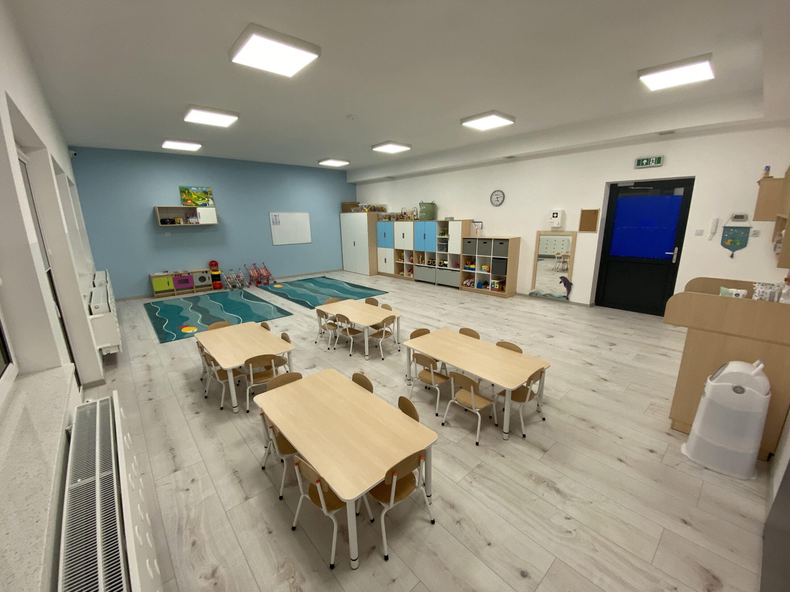 Dysponujemy trzema nowoczesnymi i przestronnymi salami, z których każda posiada własne zaplecze sanitarne dostosowane do potrzeb najmłodszych dzieci. Aranżacja przestrzeni umożliwia podejmowanie różnorodnych aktywności — od swobodnej zabawy, przez zajęcia ruchowe i sensoryczne, po spokojny czas odpoczynku.